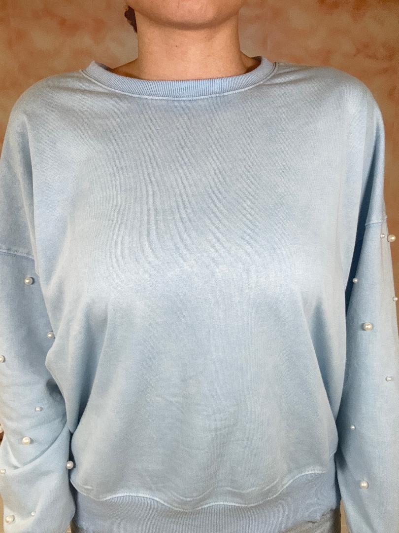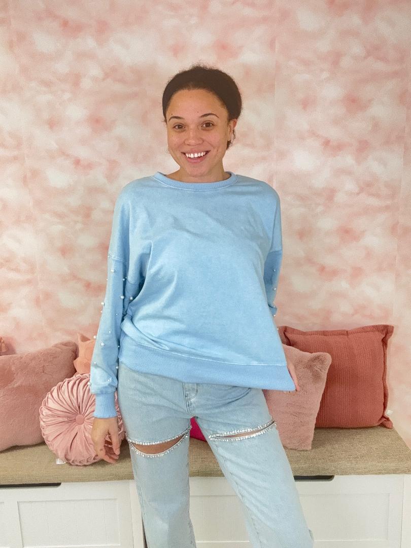 Peach Love Blue Pearl Embellished Sweatshirt